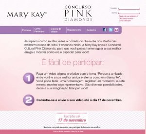 O hotsite responsivo elaborado para a Mary Kay teve como objetivo divulgar o Concurso Cultural Pink Diamonds durante o período da Campanha de Lançamento do produto. O hotsite foi utilizado como ferramenta de divulgação e promoção.